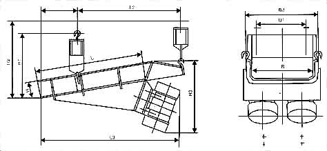 給料機的給料過程是利用特制的振動電機或兩臺電動機帶動激振器驅(qū)動給料槽沿傾斜方向作周期直線往復振動來實現(xiàn),當給料槽振動的加速度垂直分量大于重力加速度時,槽中的料被拋起,并按照拋物線的軌跡向前跳躍運動,拋起和下落在瞬間完成,由于激振源的連續(xù)激振,給料槽連續(xù)振動,槽中的煤連續(xù)向前跳躍,以達到給料的目的。