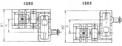 • 右裝一站在電動機尾部向前看,減速器低速軸在電動機的右側。